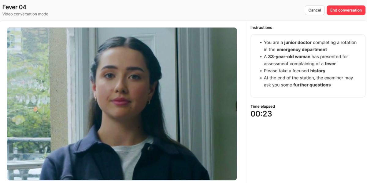 - Hold a real-time consultation with the virtual patient using text, voice or video modes